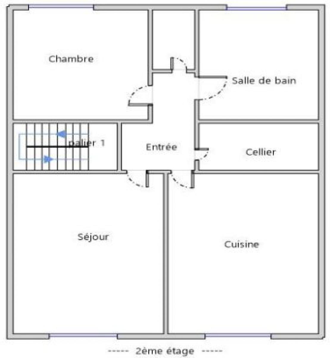 Cet appartement se situe au 2ème étage d'un petit immeuble sur deux niveaux.