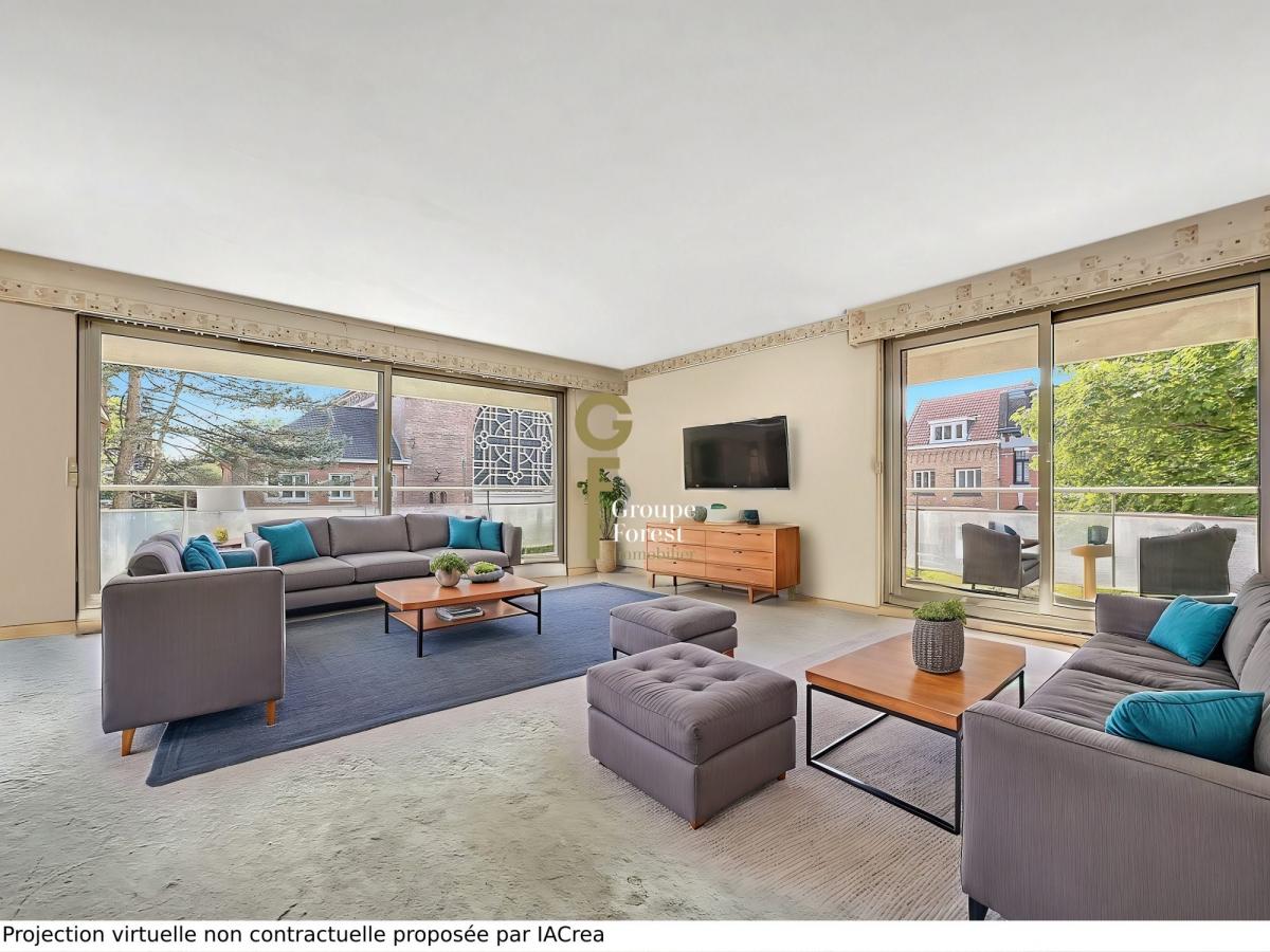 Dans une résidence de standing en bordure du Parc Barbieux, cet appartement d'angle exposé sud-ouest de 106,65 m² habitables propose 3 chambres et 2 salles d'eau, il bénéficie d'un large balcon de 17,12 m² qui ceinture le séjour.