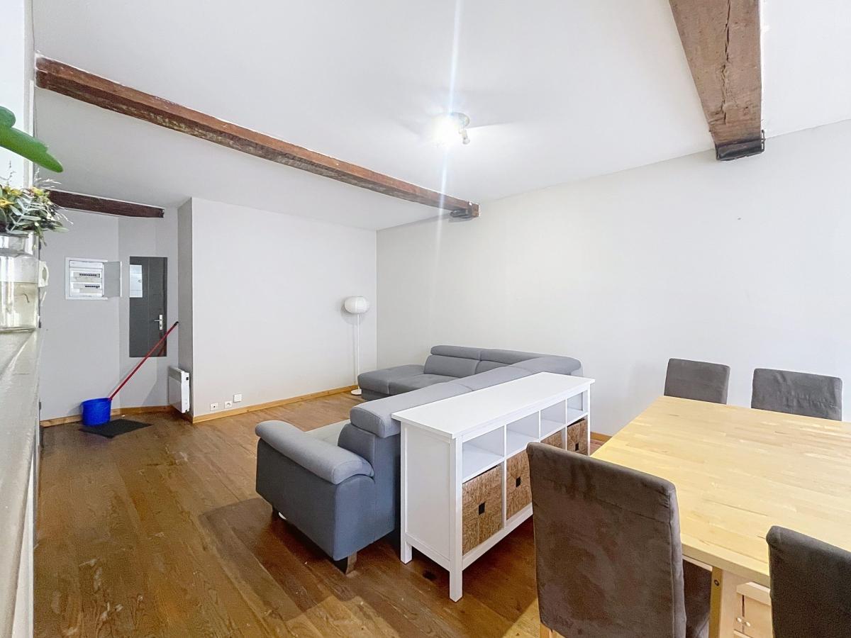 L’appartement offre beaucoup de cachet : charme de l’ancien, poutres apparentes et une atmosphère chaleureuse. Il se compose d’un séjour avec cuisine semi-ouverte, d’une chambre avec rangements intégrés, ainsi que d’une salle de bain.