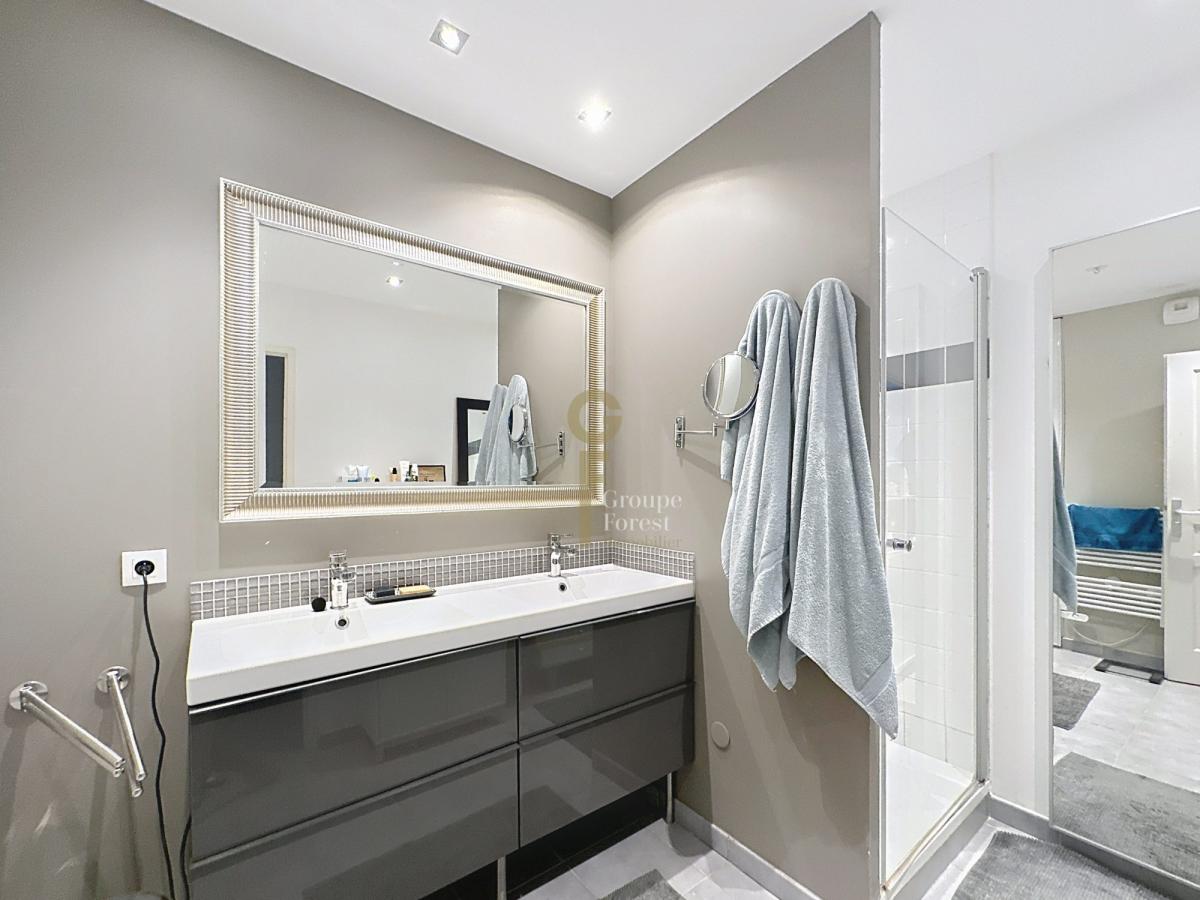 Très belle terrasse sud ouest de 35 m2. Séjour ultra lumineux , cuisine ouverte entièrement équipée, deux chambres (12,3 et 10,5 m2). Salle de bains avec douche, double vasque. Nombreux placards.