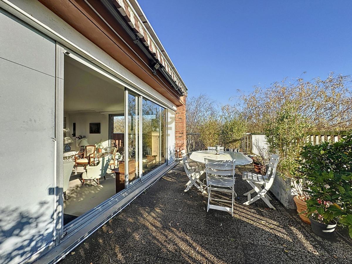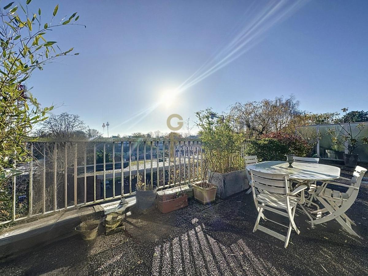Celui-ci est composé d'une belle entrée desservant un grand séjour de plus de 32m2 donnant sur une grande terrasse de presque 40m2, une salle à manger donnant directement sur une cuisine fermée et équipée.
