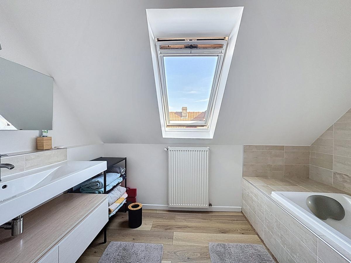 A la frontière entre Roncq et Bondues, dans un domaine prisé à deux pas de la Croix Blanche, maison individuelle entièrement rénovée comprenant : Au rez de chaussée, une belle pièce de vie de 83 m² avec cheminée feu de bois, cuisine équipée haut de gamme, cellier et garage 2 voitures. A l'étage, 4 chambres dont un coin parental avec sa salle de douche et une salle de bains. Magnifique jardin sans vis à vis, bonne exposition. Au calme.