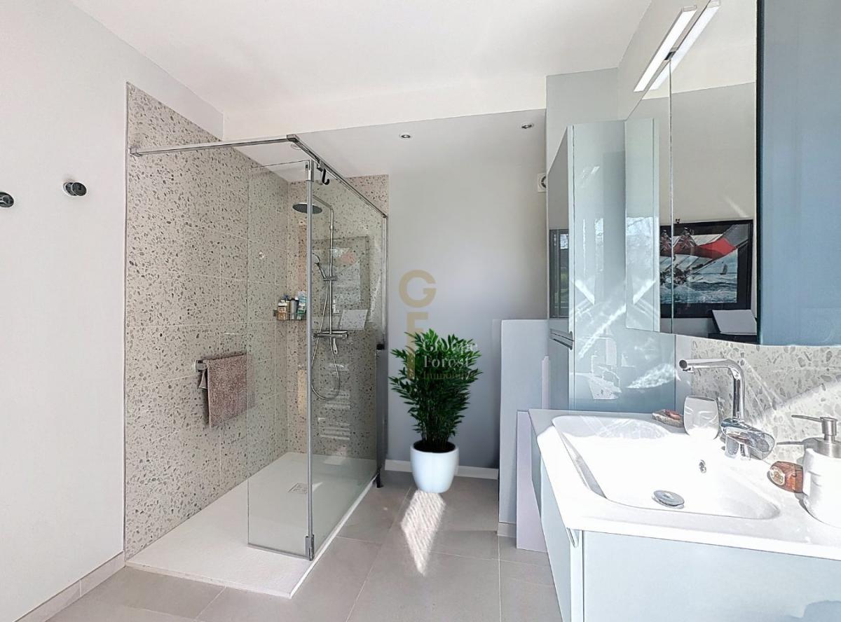 À l’étage, l’espace nuit comprend trois grandes chambres, une salle de douche ainsi qu’une salle de bains, garantissant confort et praticité pour toute la famille.