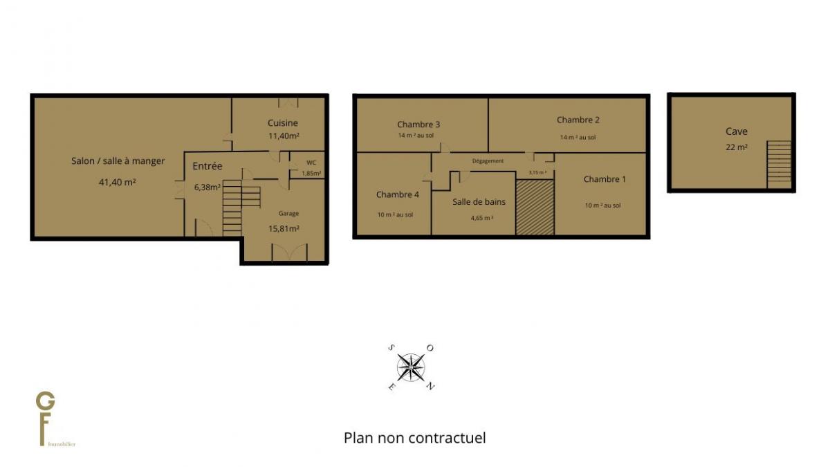 Une cave de 22 m², un garage, un grand parking, un portail, un abri de jardin, un jardin clos paysagé contribuent au bien-être.