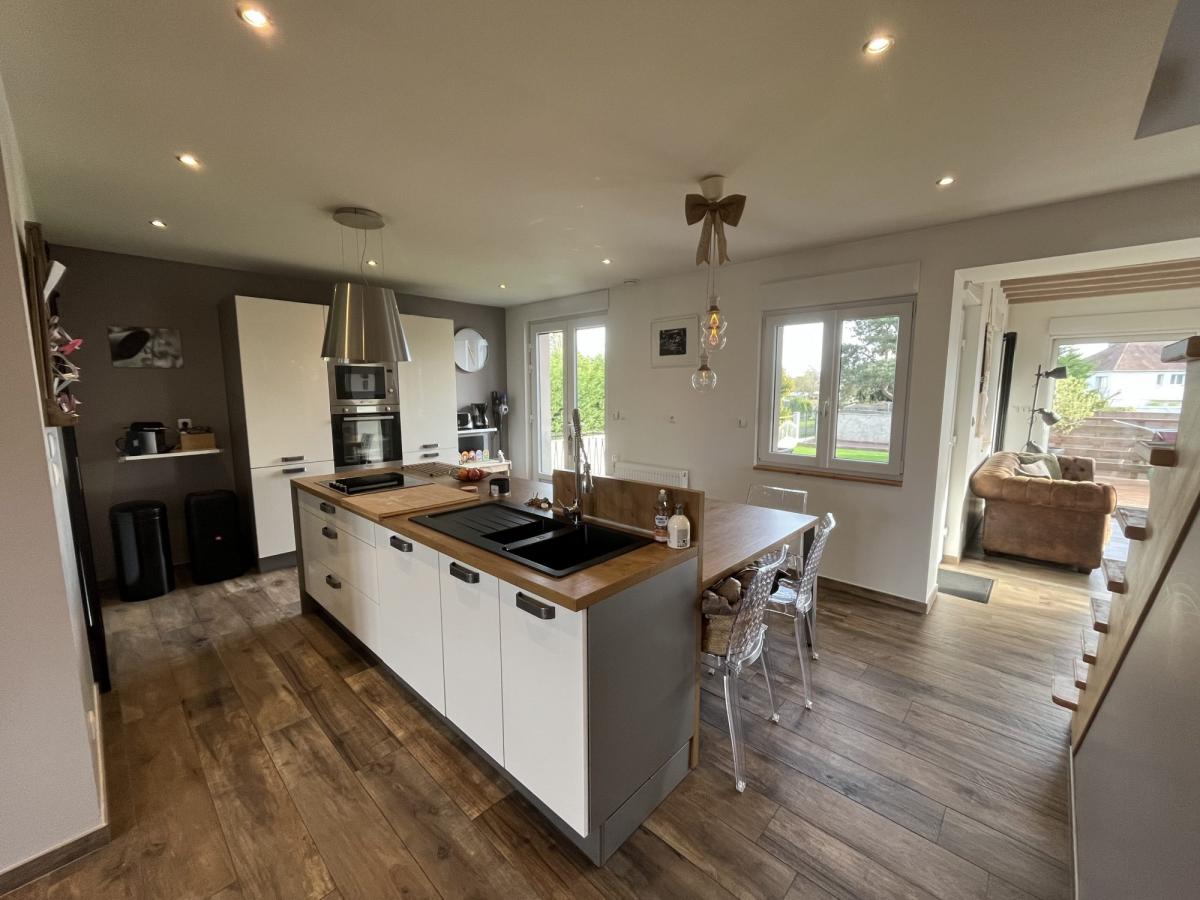 En entrant, vous trouverez de beaux espaces de vie avec une spacieuse salle à manger avec poêle à pellets, une cuisine américaine ouverte, un bureau séparé, un salon avec cheminée feu de bois ouvert sur grande terrasse double bien exposée, une salle de bain et un wc individuel. Les pièces de vie sont très lumineuses.