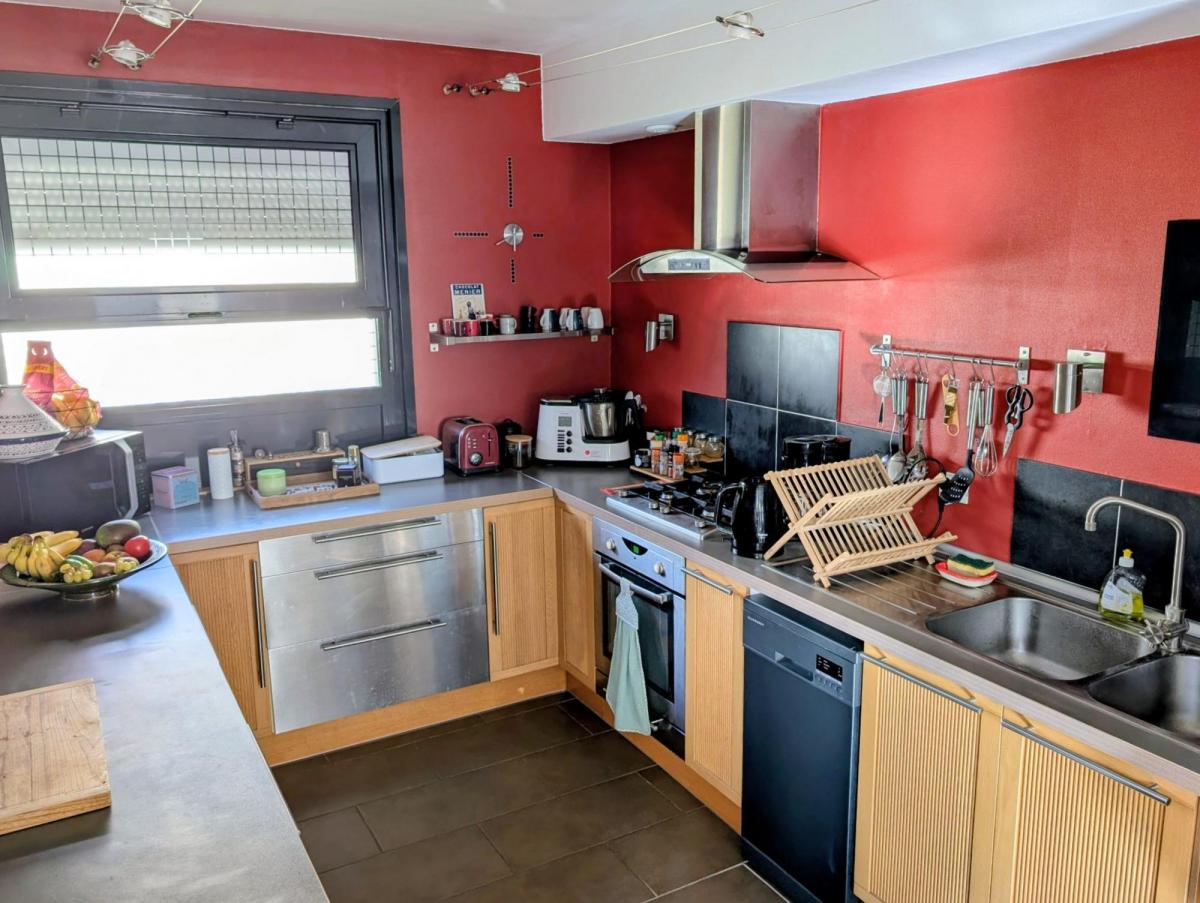 À l’intérieur, un hall d’entrée accueillant vous mène vers une superbe pièce de vie parquetée et traversante de 32m² dégageant une atmosphère chaleureuse et élégante. Pour plus de convivialité, la cuisine entièrement équipée et très fonctionnelle, est ouverte sur le séjour. Elle offre de nombreux rangements et une vue apaisante sur le jardin.