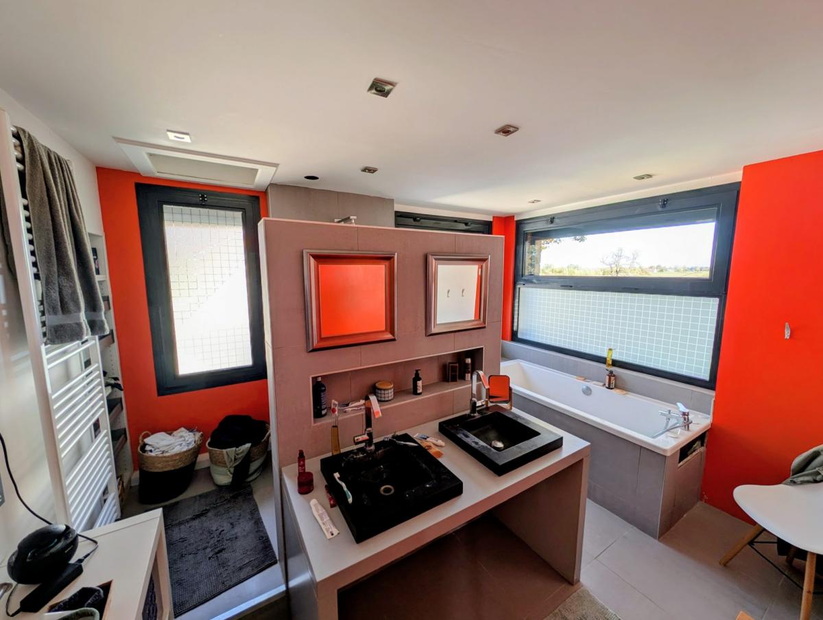Pour parfaire l'ensemble, une large porte-fenêtre s’ouvre sur une agréable terrasse plein sud de 10m², parfaite pour lire un bon livre ou savourer un apéritif au soleil. Enfin un espace bureau avec placard aménagé, penderie et toilettes complète ce niveau.