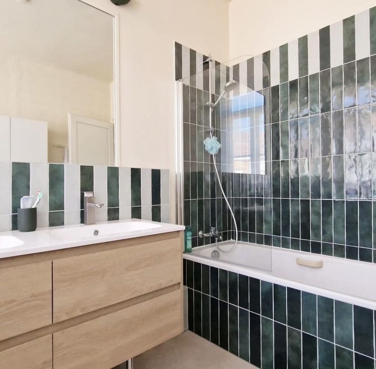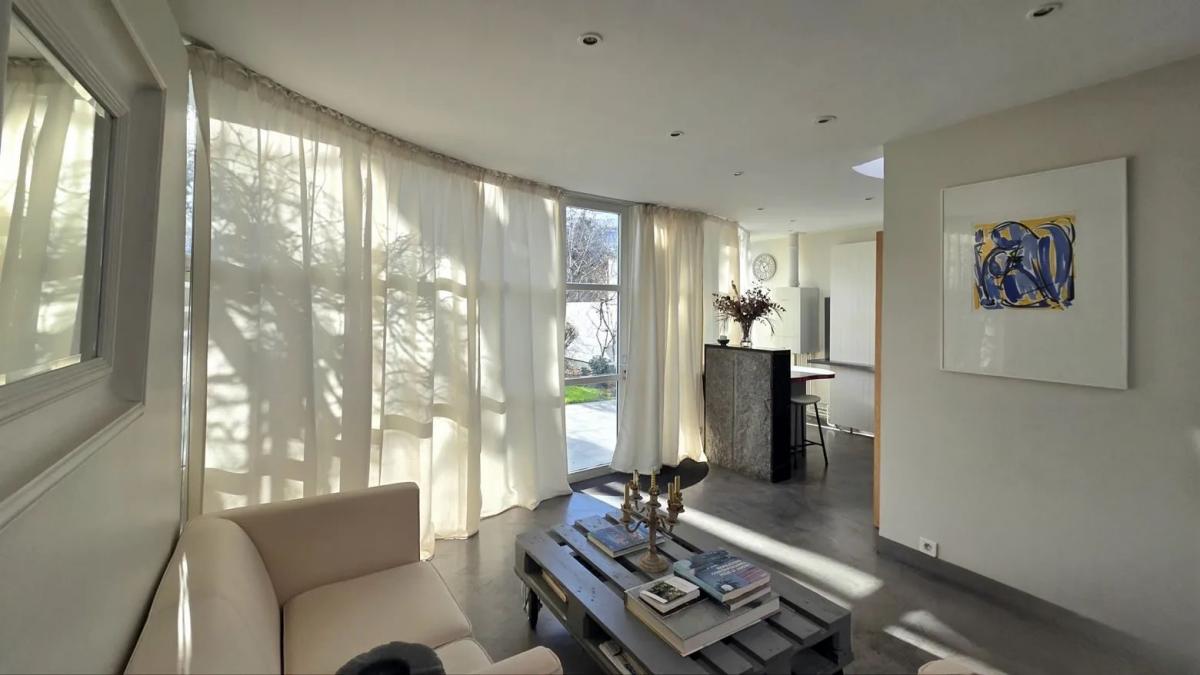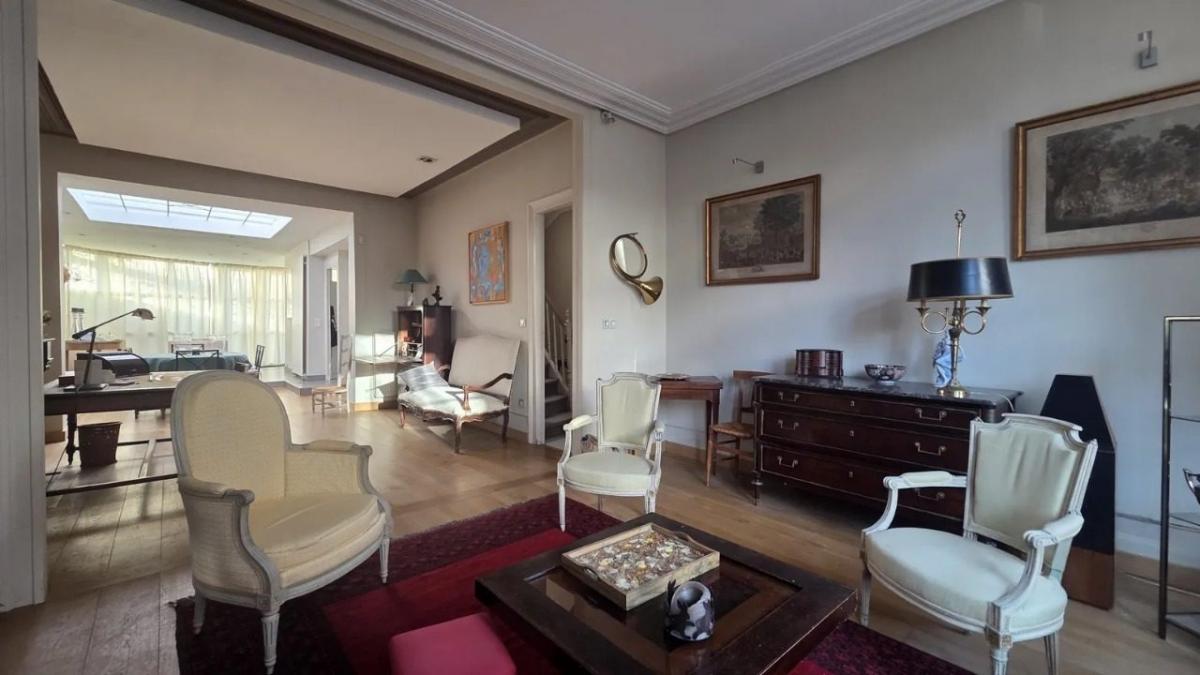 Au rez-de-chaussée, une grande pièce de vie d’environ 55 m² qui marie avec élégance l’authenticité de l’ancien et le confort du contemporain. Ce bel espace lumineux, équipé d’une cheminée insert et d’un parquet en chêne massif, se compose de deux salons et d’un coin salle à manger attenant à la cuisine, offrant une agréable vue sur le jardin.La baie vitrée toute largeur, véritable élément architectural de la pièce, apporte une lumière naturelle abondante et prolonge l’espace intérieur vers le jardin arboré, exposé plein sud.