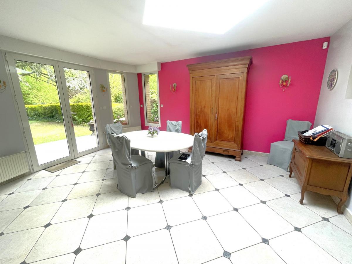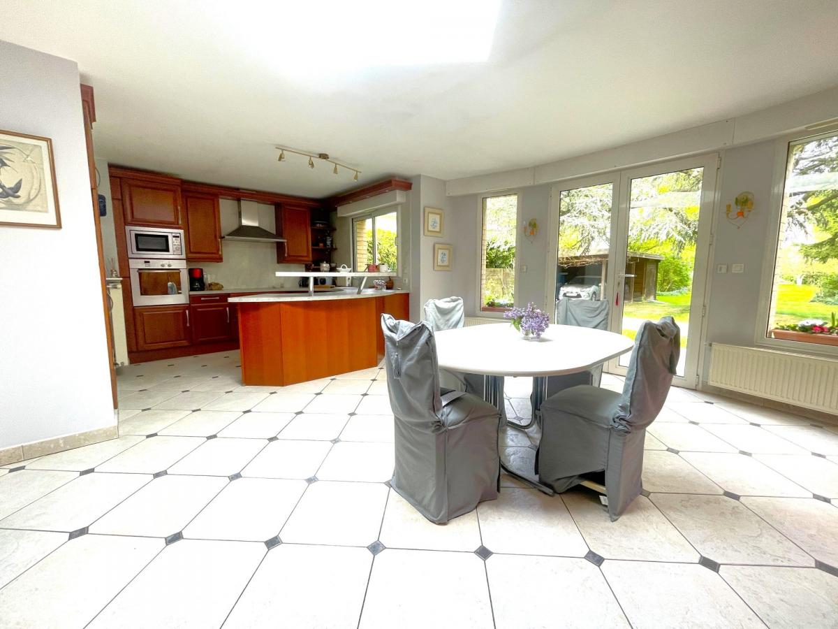 Elle offre un vaste séjour de 44 m² ainsi qu’une cuisine avec salle à manger de 29 m², ouverte sur un magnifique jardin.