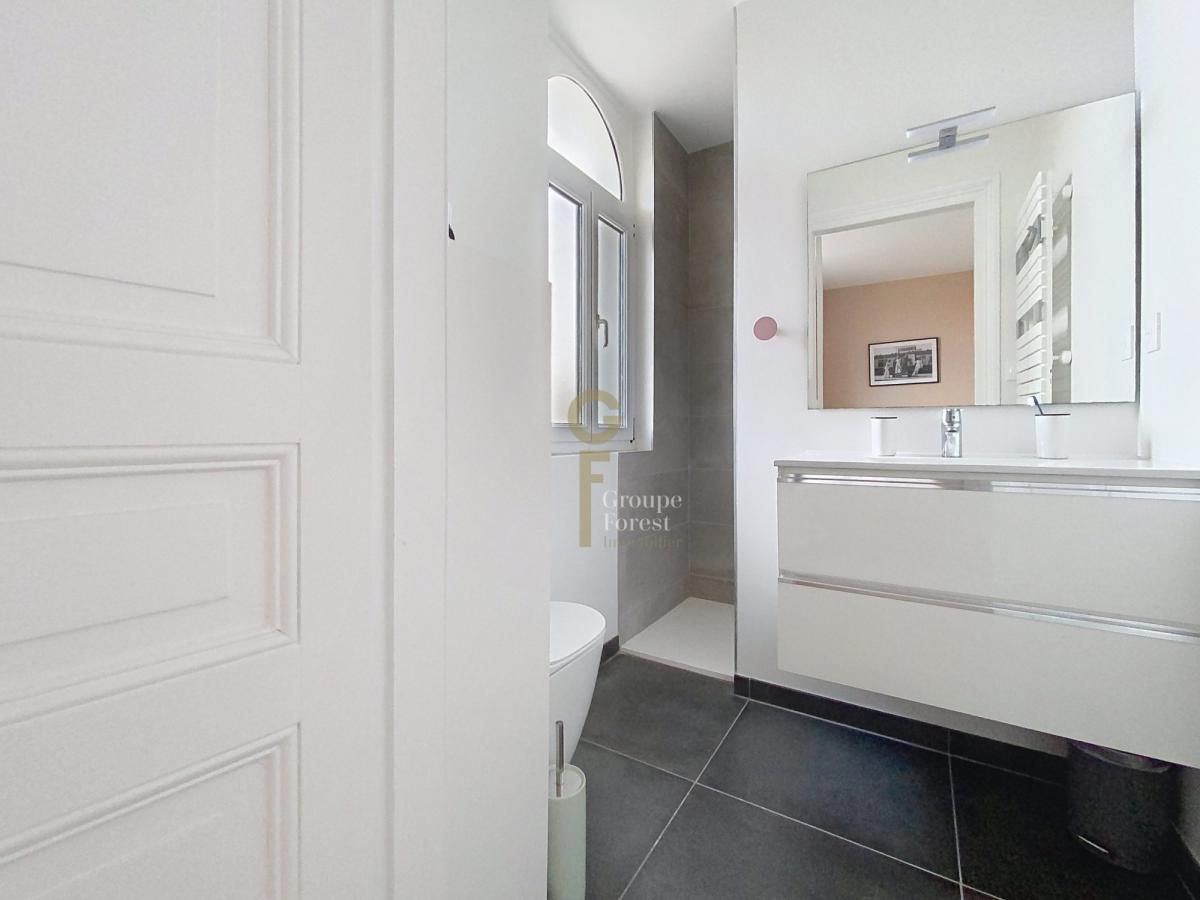 Au 2ème étage, 1 belle chambre avec placard, sa salle de bains et 1 WC et une chambre avec sa salle de douche et 1 WC ;