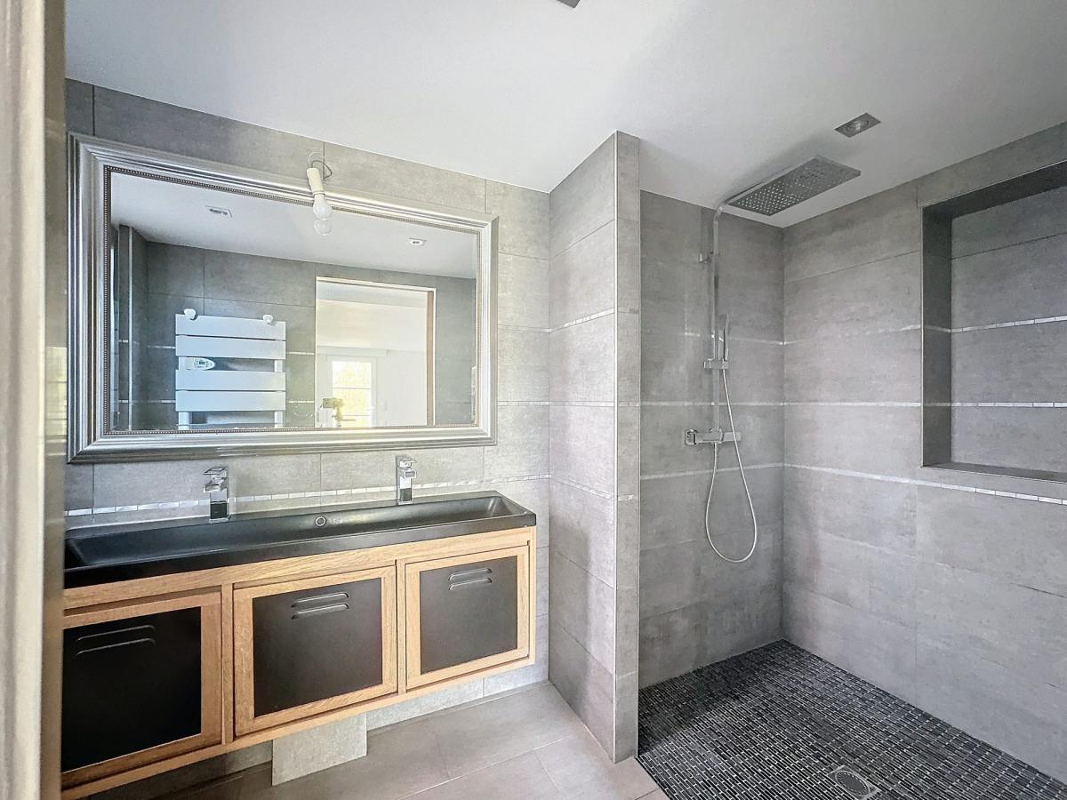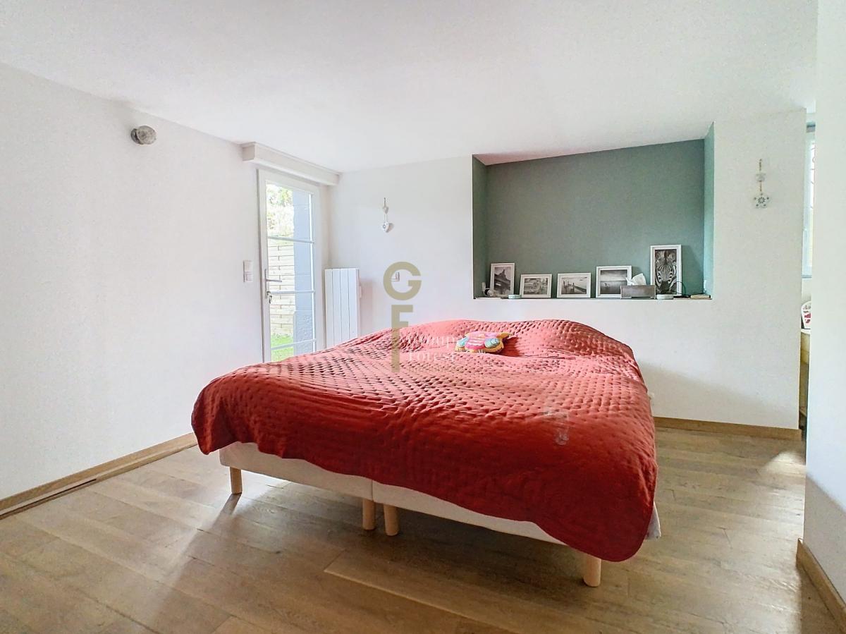 En rez de jardin, on retrouve la chambre parentale avec dressing et salle de douche.