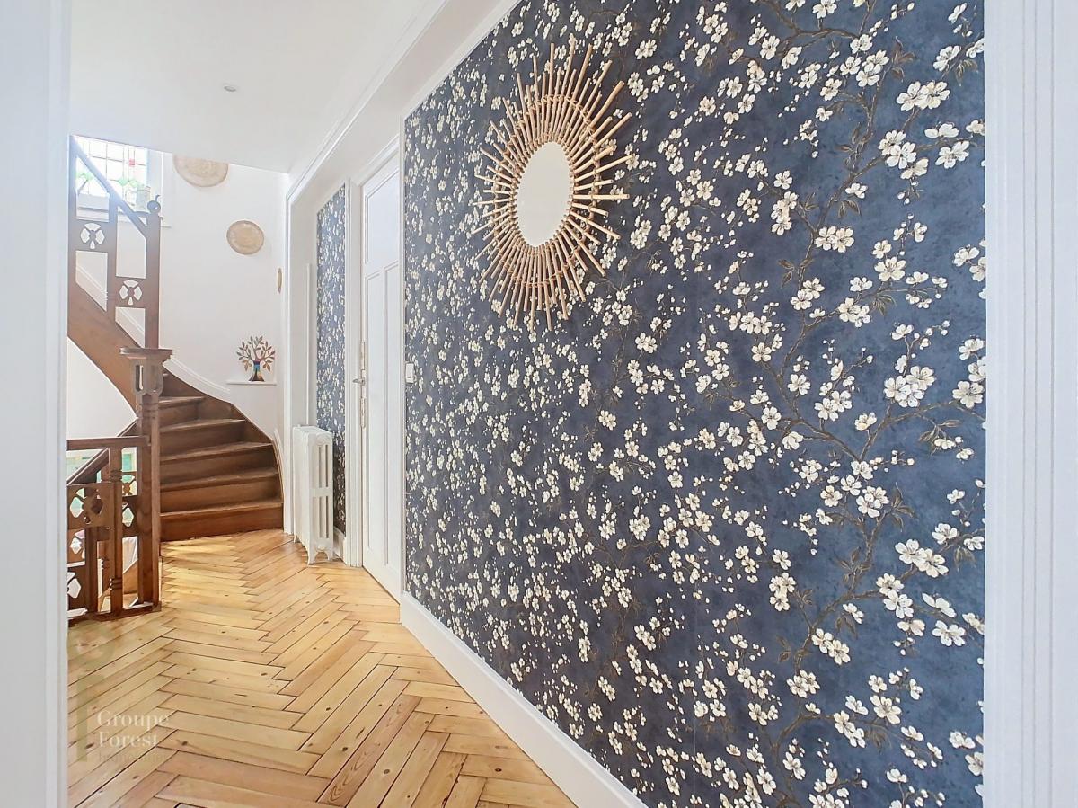 - un grand séjour d'environ 50 m2 baigné de lumière dont un joli salon avec parquet chevron et une salle à manger donnant sur la terrasse.
