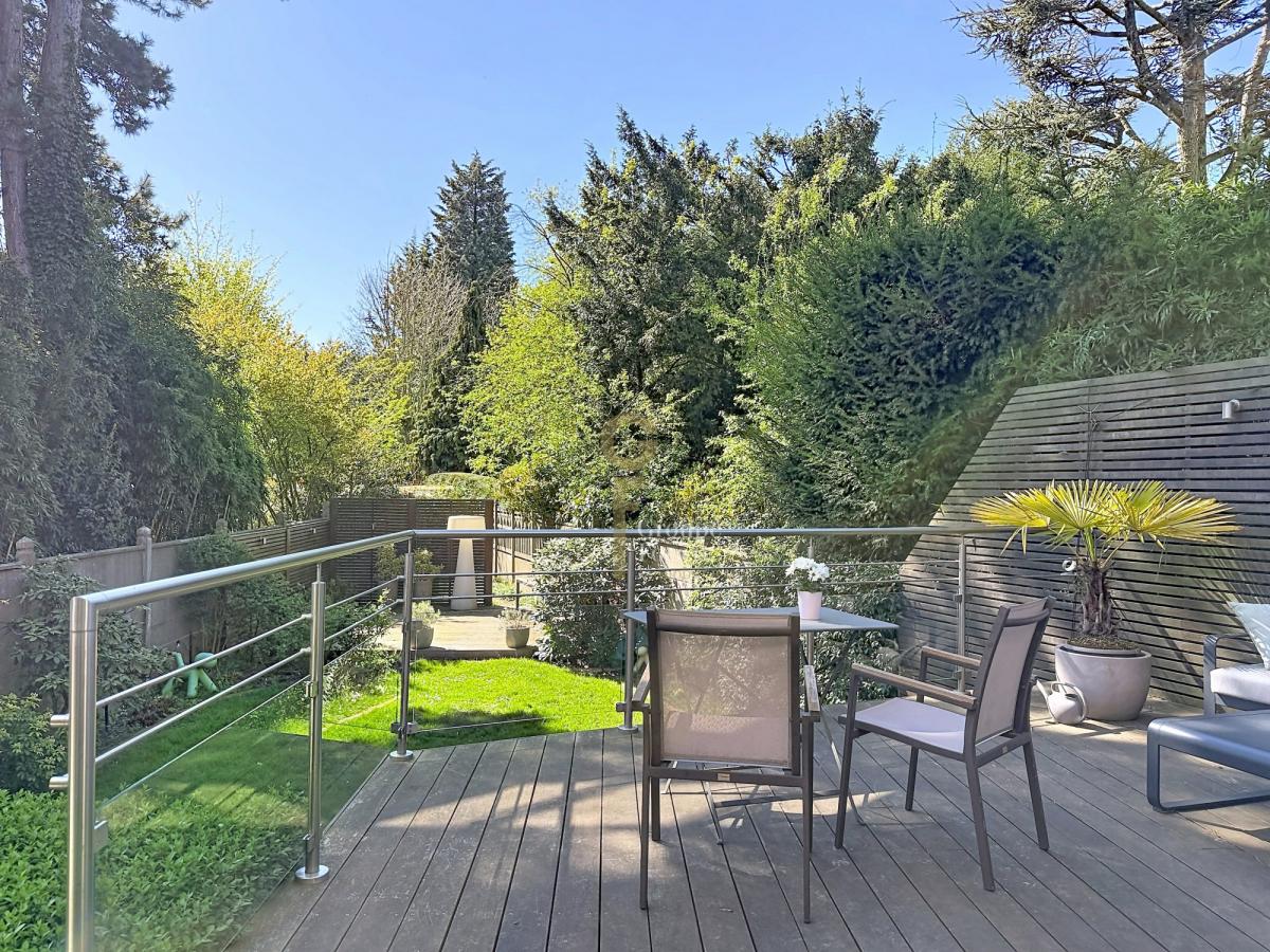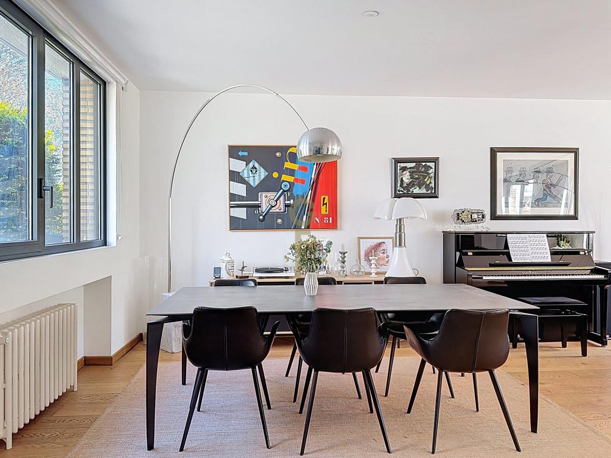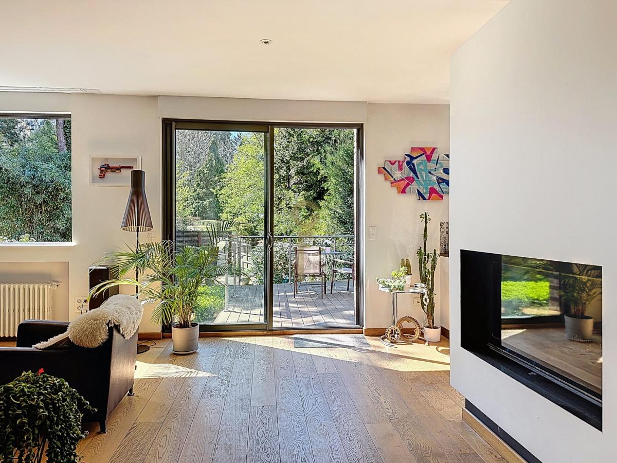 Développée sur deux plateaux d’environ 110 m² chacun, cette maison a été entièrement rénovée en 2016. Elle séduit dès l’entrée par ses proportions généreuses et sa belle hauteur sous plafond. Le rez-de-chaussée accueille une somptueuse pièce de vie de plus de 80 m², baignée de lumière naturelle, entièrement ouverte sur le jardin exposé plein sud — un espace de réception aussi spectaculaire que chaleureux. Un bureau, idéal pour le télétravail vient compléter ce niveau ainsi qu’une cheminée.