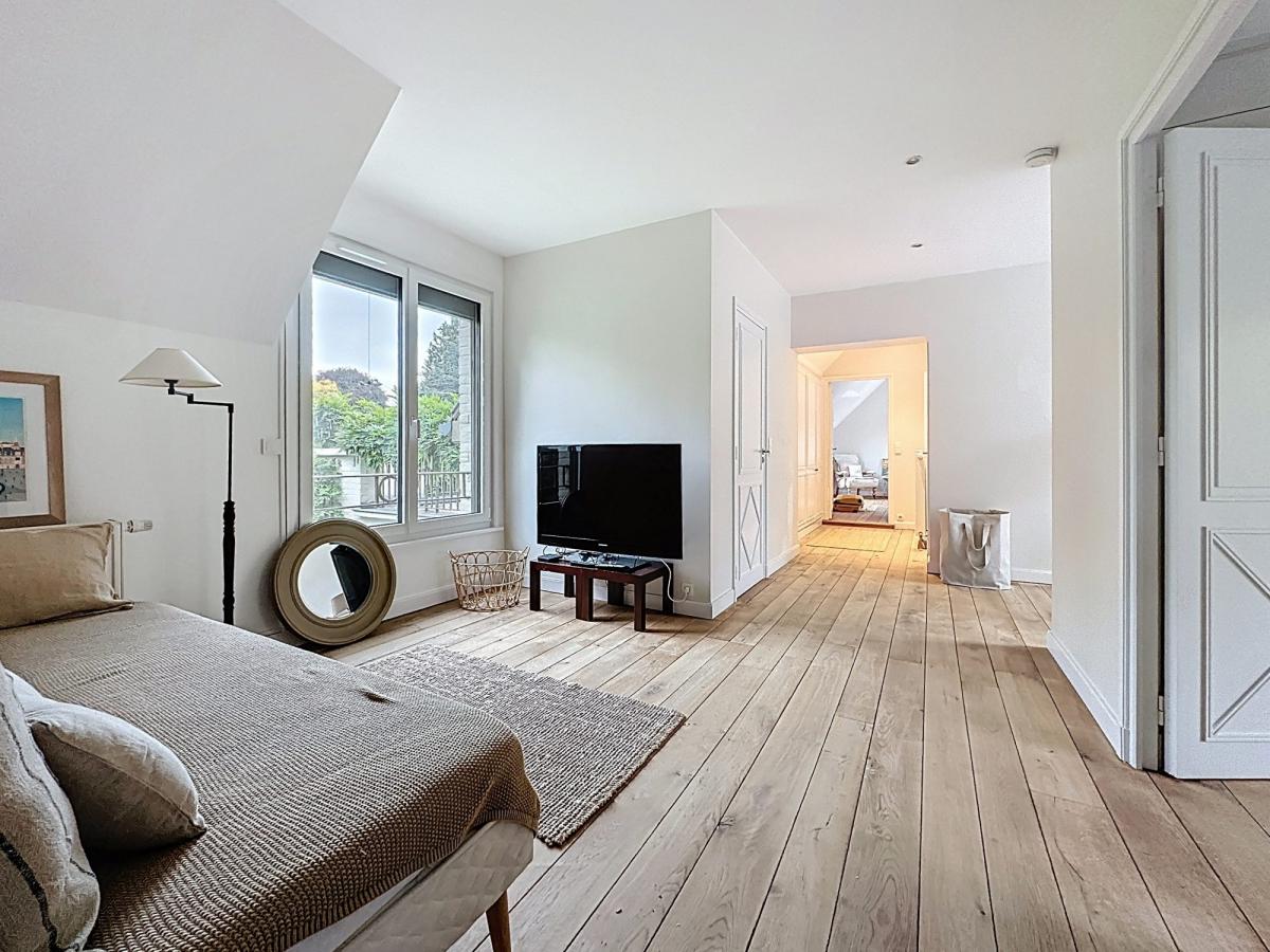 Belle entrée, espace vestiaire, séjour de 36 m² avec cheminée (insert neuf à ventilation), salle à manger de 26 m², et cuisine équipée de 27 m² avec arrière cuisine / buanderie. Espace parents en rdc composé d'une belle chambre, un grand bureau, dressing et salle de bain complète.