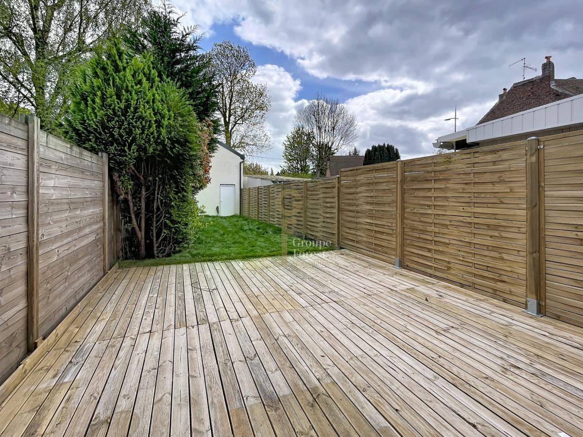 À proximité immédiate du tramway Faidherbe, découvrez cette magnifique maison entièrement rénovée, offrant de beaux volumes et une distribution fonctionnelle. Elle se compose d’une entrée, d’une cuisine équipée avec espace repas, ainsi que d’un salon-séjour lumineux ouvert sur un jardin exposé plein sud, complété par une lingerie.