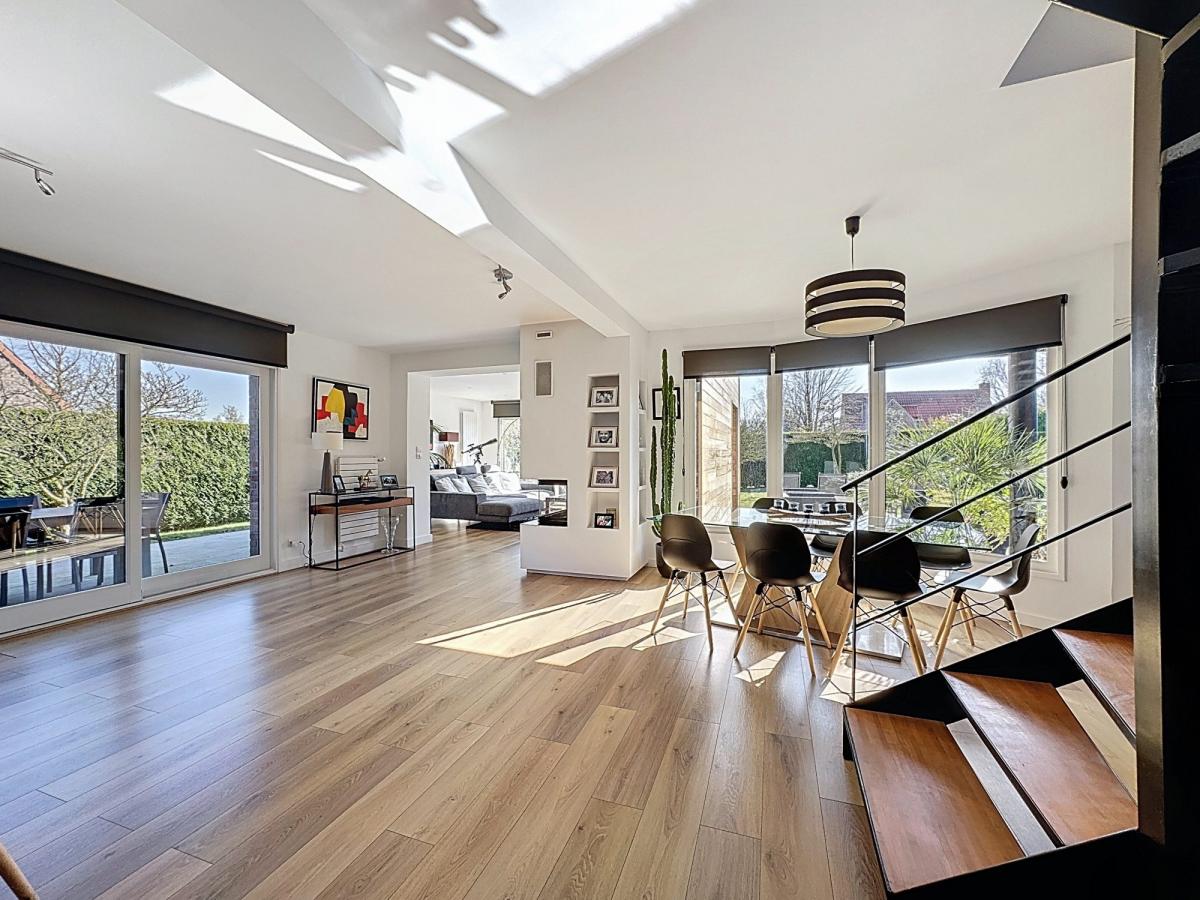 A la lisière de Roncq et de Bondues, dans un domaine prisé à deux pas de la Croix Blanche, maison individuelle entièrement rénovée comprenant : Au rez de chaussée, une belle pièce de vie de 83 m² avec cheminée feu de bois, cuisine équipée haut de gamme, cellier et garage 2 voitures. A l'étage, 4 chambres dont un coin parental avec sa salle de douche et une salle de bains. Magnifique jardin sans vis à vis, bonne exposition. Au calme.