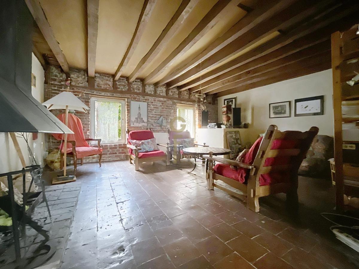 Vous serez charmé par l'esprit de la maison (poutres apparentes, cheminée feu de bois, carreaux de ciment, briques apparentes...