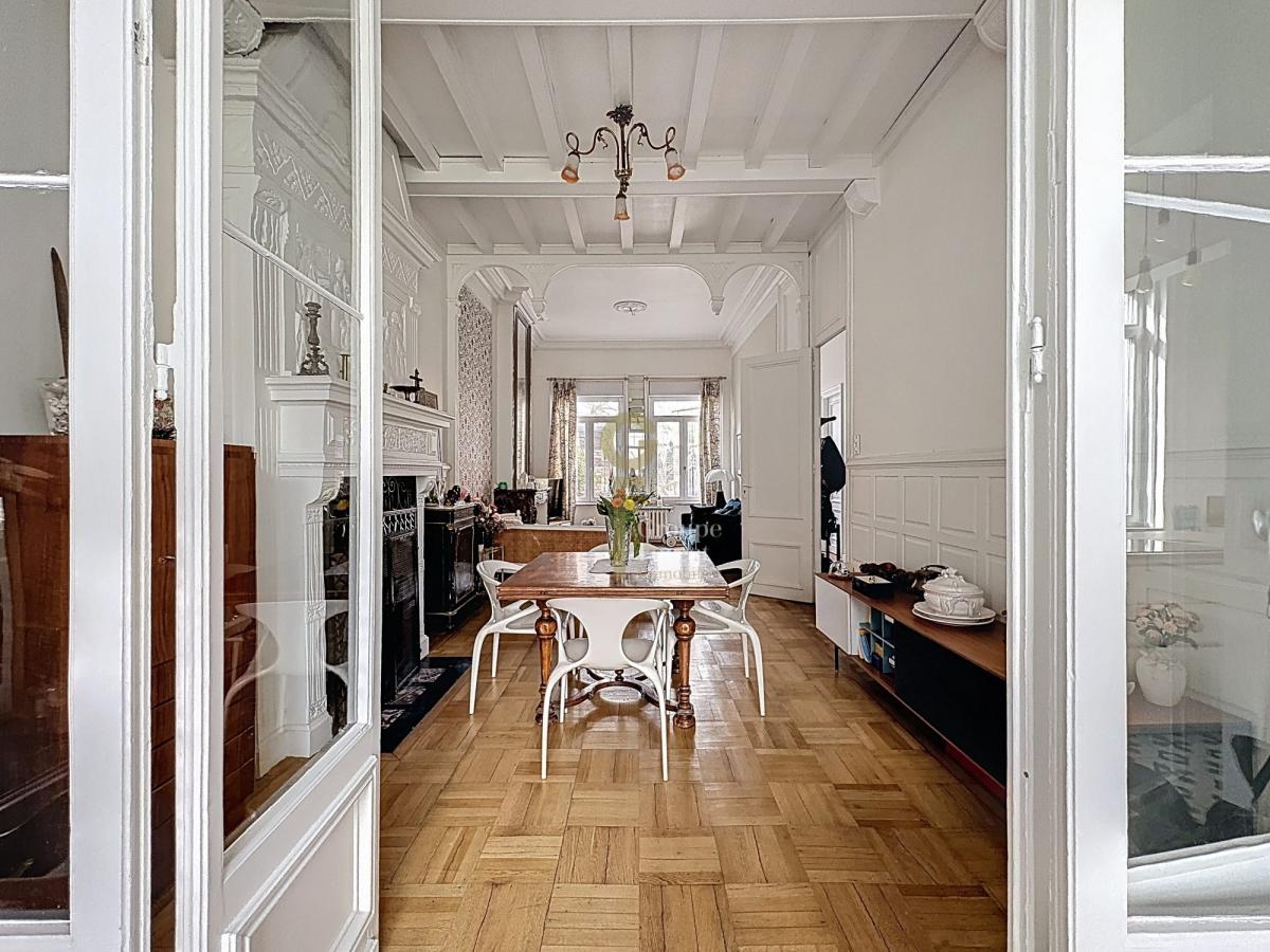 Au rez-de-chaussée, la maison s’ouvre sur un superbe salon de 35 m², magnifié par une hauteur sous plafond de 3,60 m et une élégante double cheminée qui lui confère charme et prestance, avec la possibilité d’en remettre une en fonction.